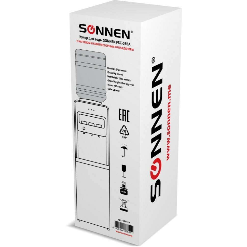 Кулер для воды Sonnen 455417 FSC-03BA, напольный, нагрев/охлаждение компрессорное, 3 крана, серый