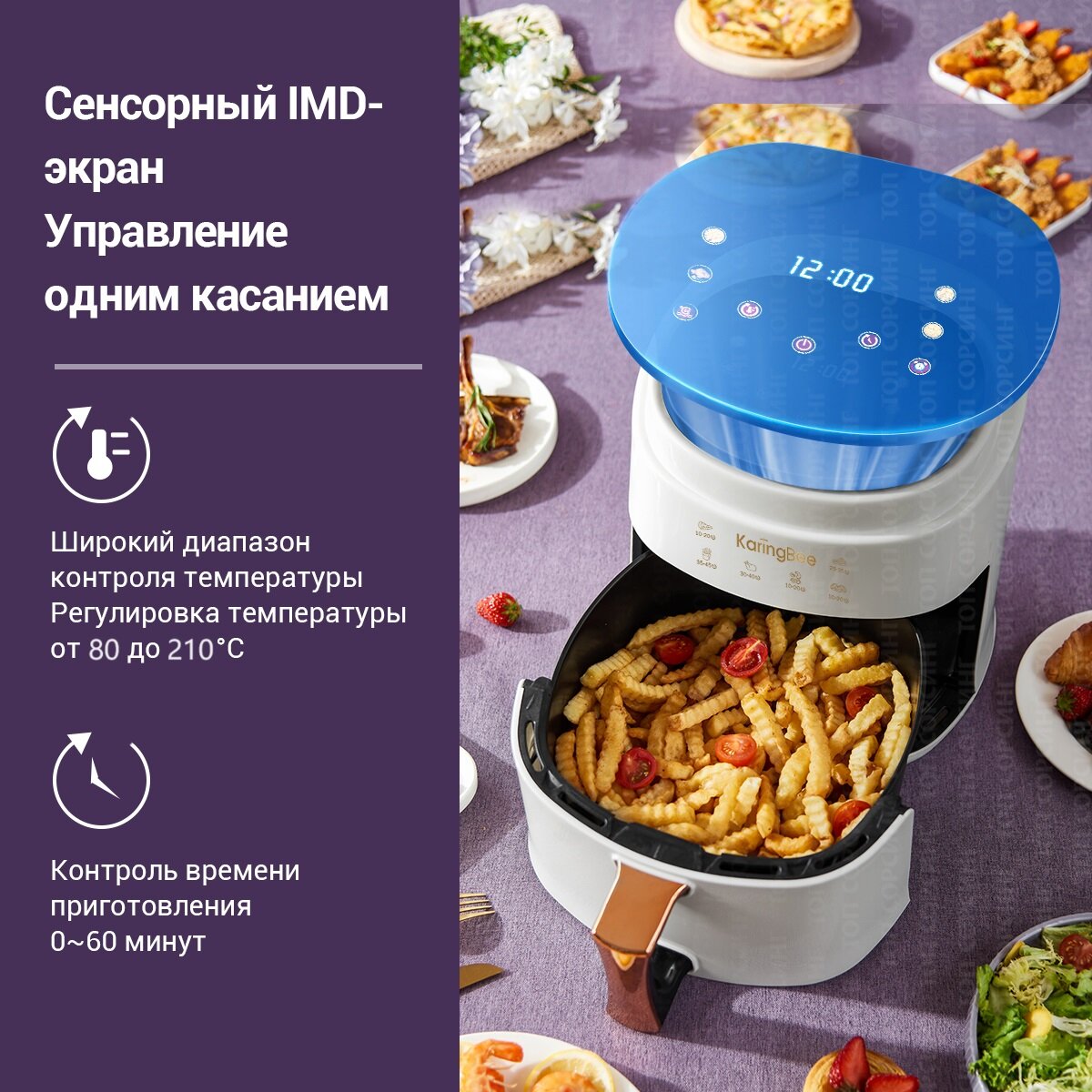 Аэрогриль KaringBee JD689 белый(ЕАС-сертификат) /Аэрофритюрница электрическая/6 блюд/объем 8 л/Мультипечь для кухни 1400 вт