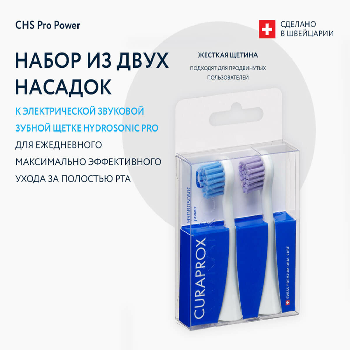 Набор насадок Curaprox CHS Pro Power для звуковой щетки, белый/голубой/фиолетовый, 2 шт.