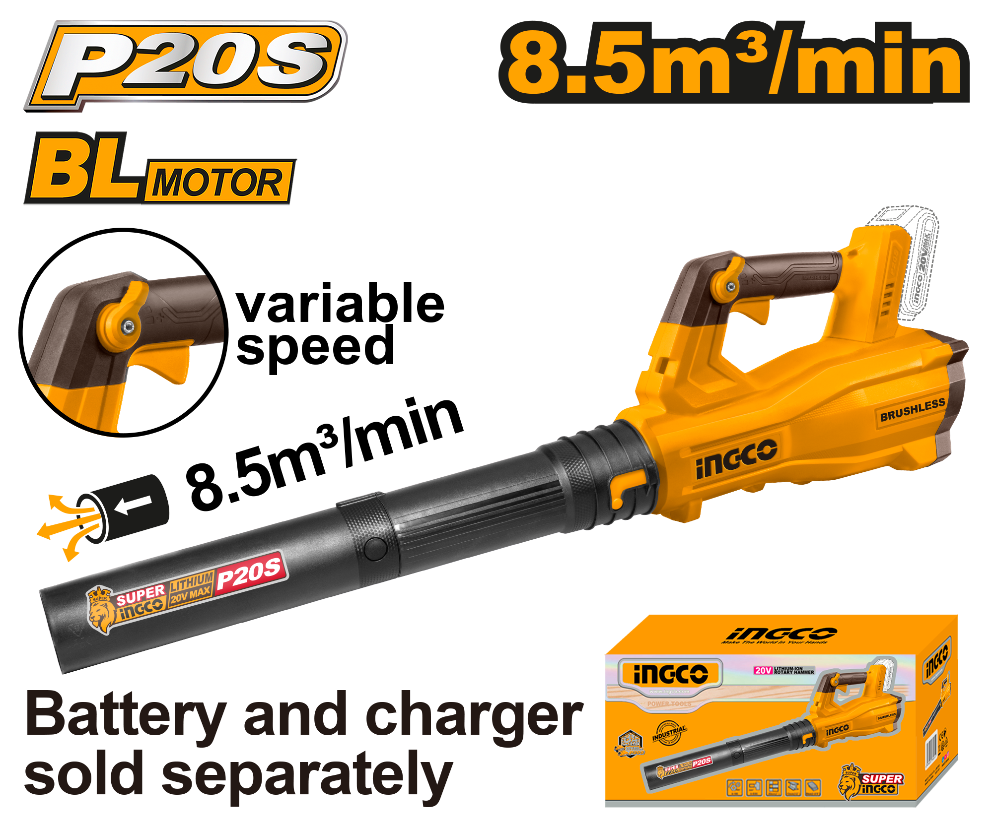 Аккумуляторная воздуходувка INGCO CABLI20428 INDUSTRIAL