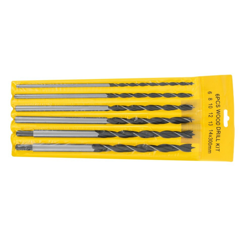 Набор сверл по дереву, 6-8-10-12-13-14 мм, L 300 мм, 6 шт, цилиндрический хвостовик Sparta