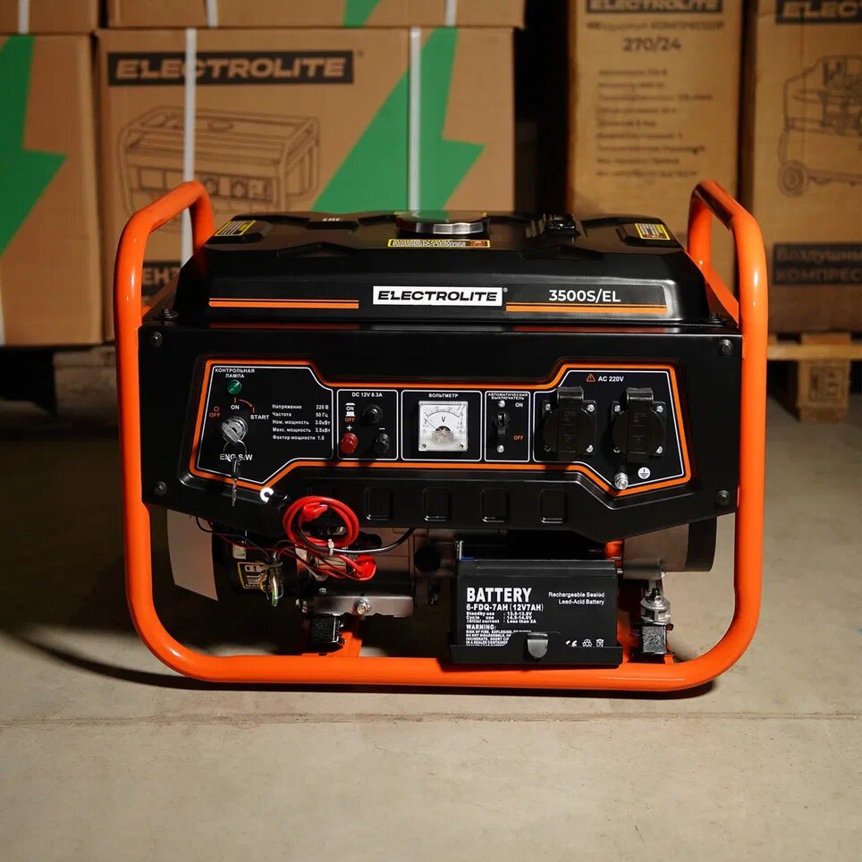 Electrolite Генератор бензиновый 3500S EL с электростартером ( 4.4 кВа максимальная нагрузка , 220 В / 12 В, 3 / 3,5 кВт, 7.5 л.с, электростартер + АКБ ) 5568