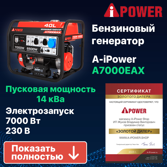 СохранитьA-iPower A7000EAX 20119, 6,5 кВт интересное: