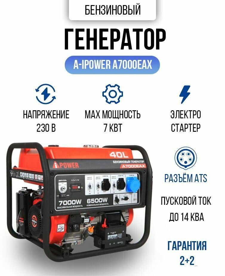 Генератор бензиновый A-iPower A7000EAX 6,5кВт, 230В/50Гц, электростартер (20119) A-iPower