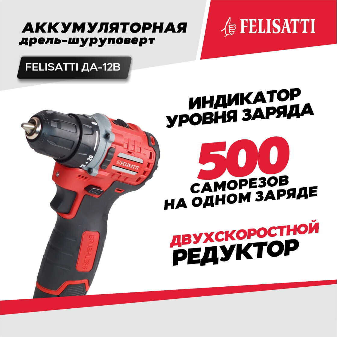 Дрель аккумуляторная бесщеточная FELISATTI ДА-12В (ЗУ разъемного типа)