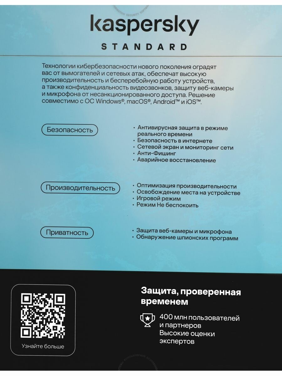 Антивирус Kaspersky Standard Russian Edition Лицензия (3 устройства, 1 год)