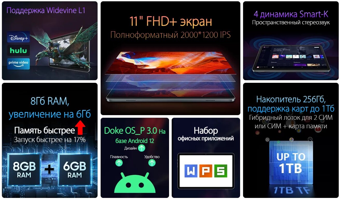 СохранитьПланшет 11" ARK Blackview Tab 16 256ГБ серый интересное: