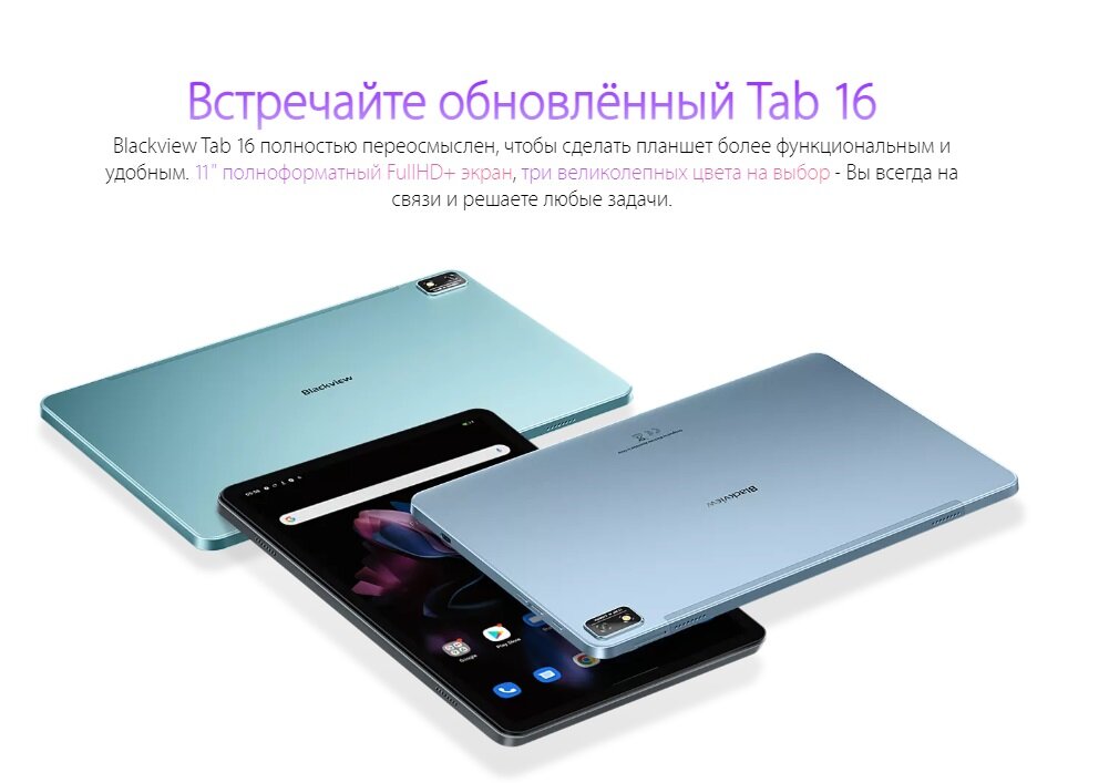 Планшет Blackview Tab 16 Twilight Blue (Unisoc Tiger T616 2.0GHz/8192Mb/256Gb/GPS/4G/Wi-Fi/Bluetooth/Cam/11.0/2000х1200/Android)