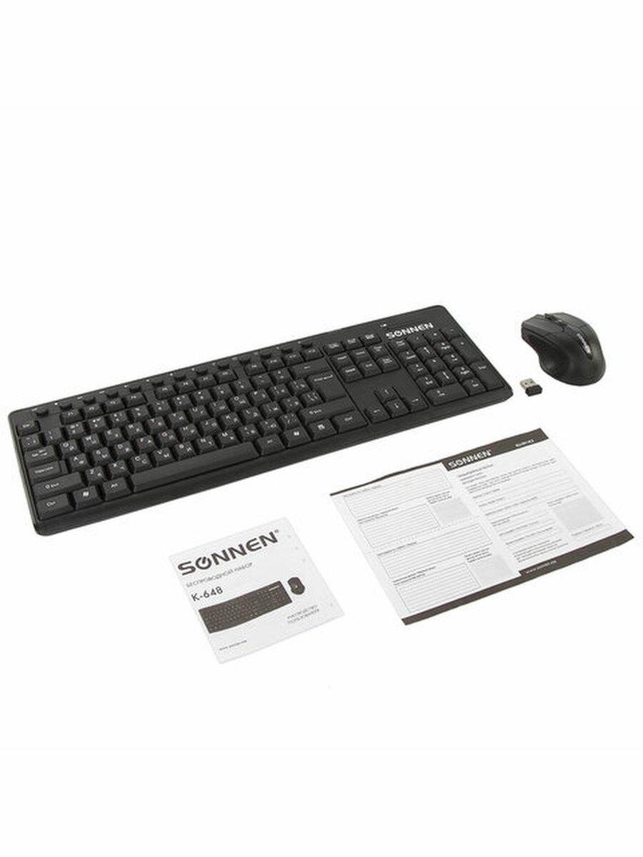 Купить Набор беспроводной SONNEN K-648 клавиатура 117 клавиш мышь 4 кнопки 1600 dpi черный, 1 шт