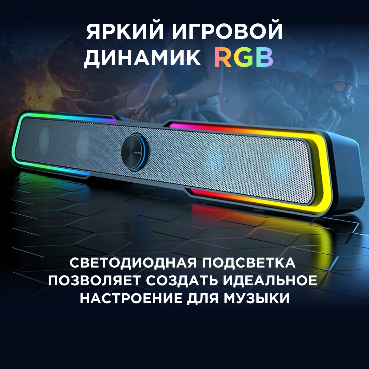 Настольный саундбар HP DHE6002, компьютерная игровая колонка для геймеров, акустическая система ( черный, 3.5 мм, USB, RGB подсветка)