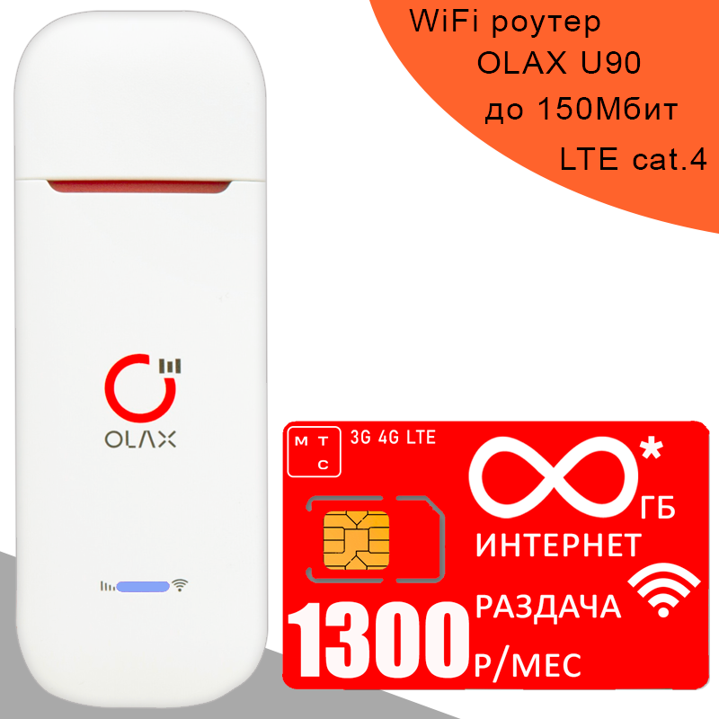 Купить Комплект с безлимитным* интернетом за 1300р/мес, беспроводной 3G/4G/LTE модем OLAX U90H-E + сим карта МТС