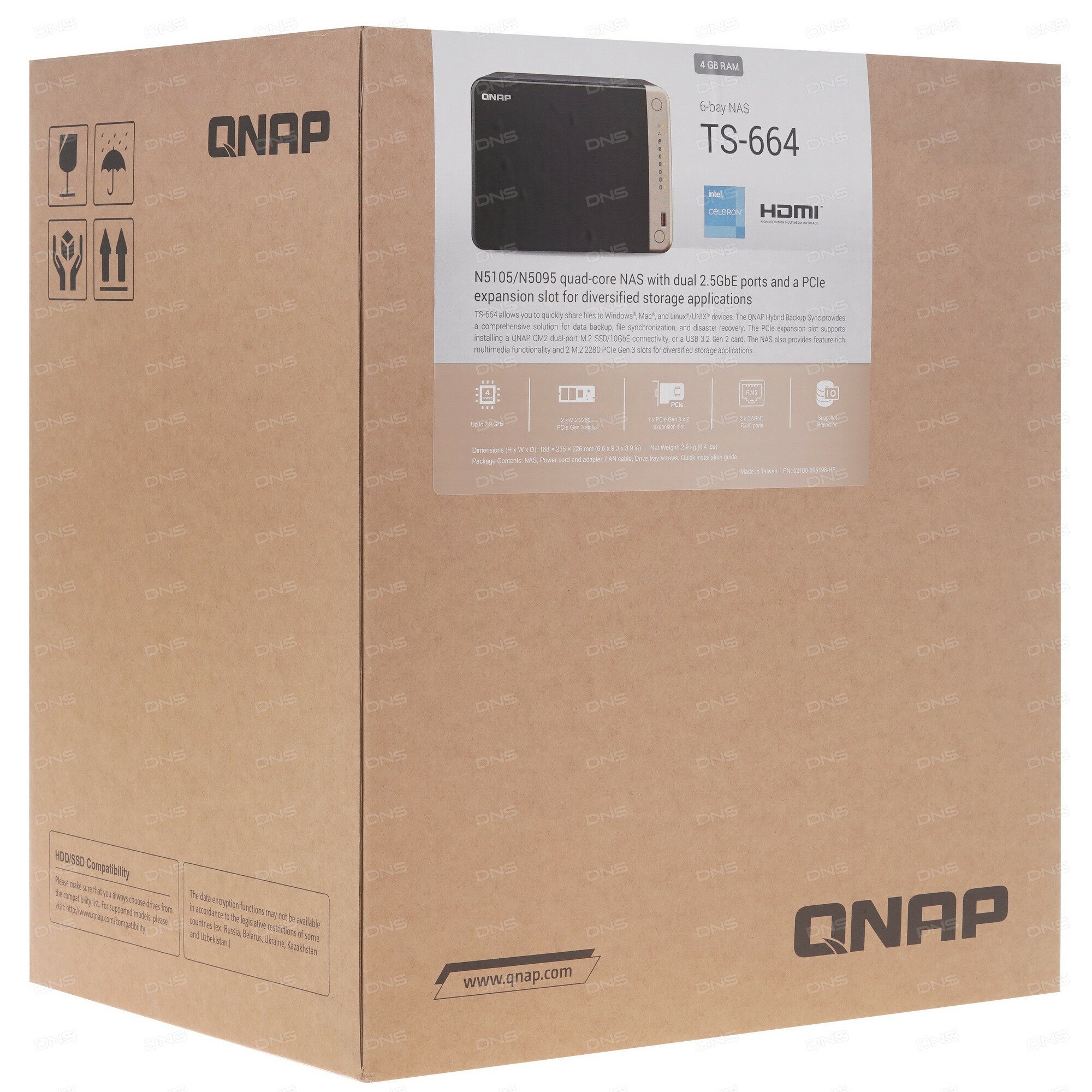 Сетевое хранилище NAS Qnap Original TS-664-4G 6-bay настольный Celeron N5095