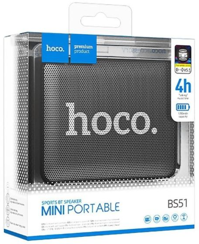 Портативная колонка Hoco BS51, 5 Вт, ВТ 5.2, FM, AUX, 1200 мАч, чёрная