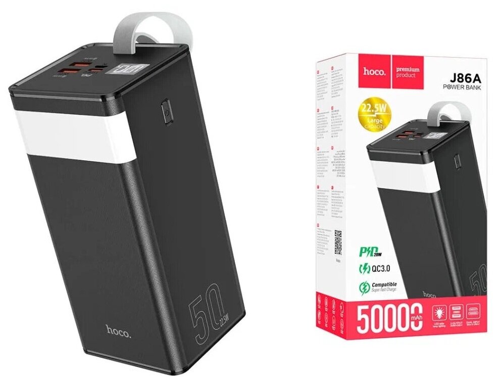 Портативный аккумулятор Hoco J86A Powermaster 50000 mAh, черный, упаковка: коробка