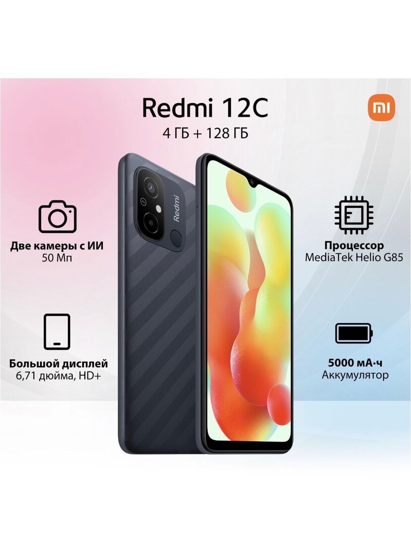 Смартфон Xiaomi Redmi 12C 4/128 ГБ RU, 2 nano SIM, Onyx Gray
