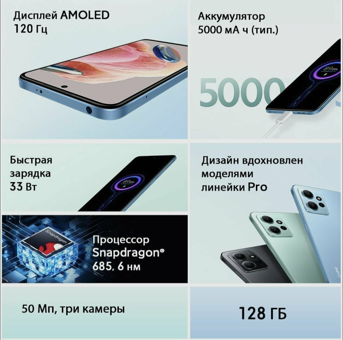 Смартфон Xiaomi Redmi Note 12 ростест 6/128 ГБ, Dual nano SIM, Ice Blue Qualcomm Snapdragon 685