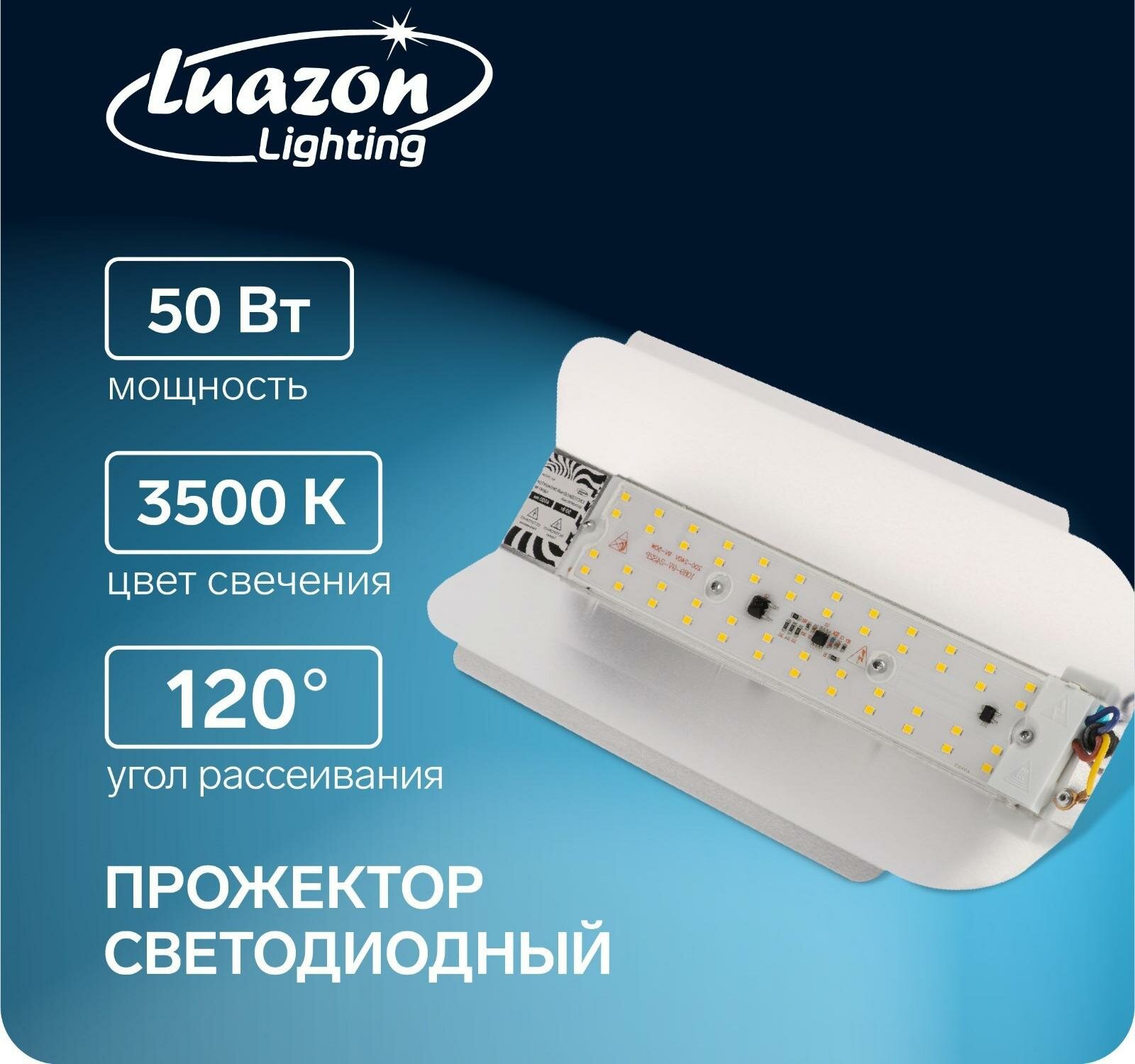 Прожектор светодиодный Luazon Lighting СДО 07-50 бескорпусный, 3500 К, 4500 Лм, IP65, 220 В интересное: