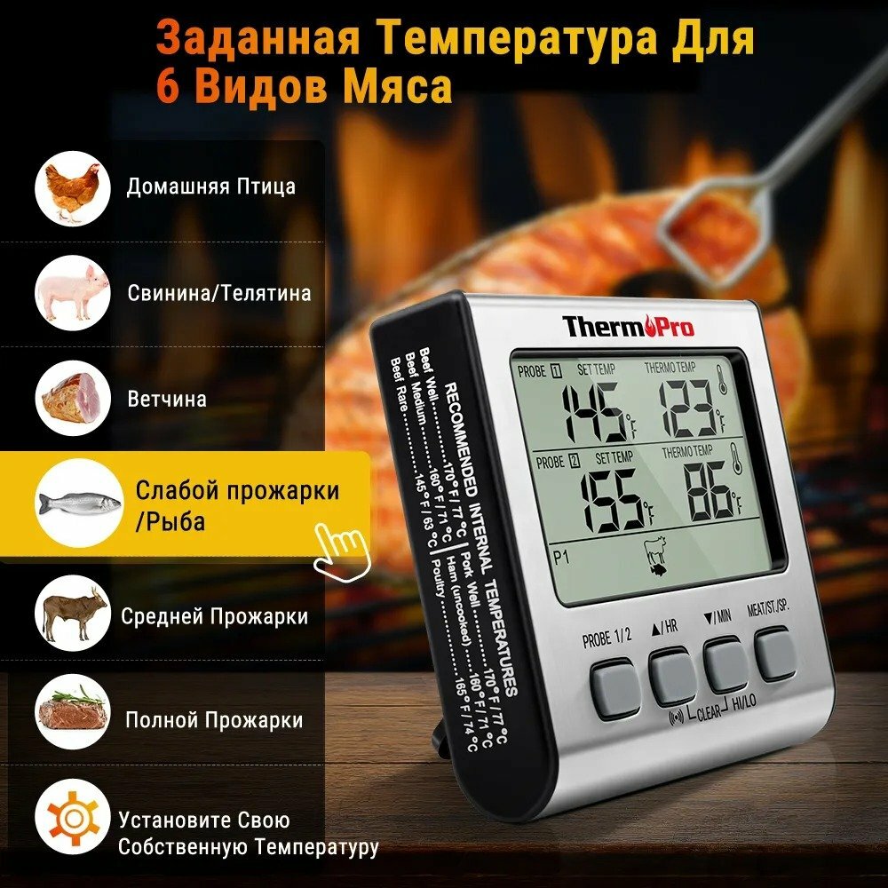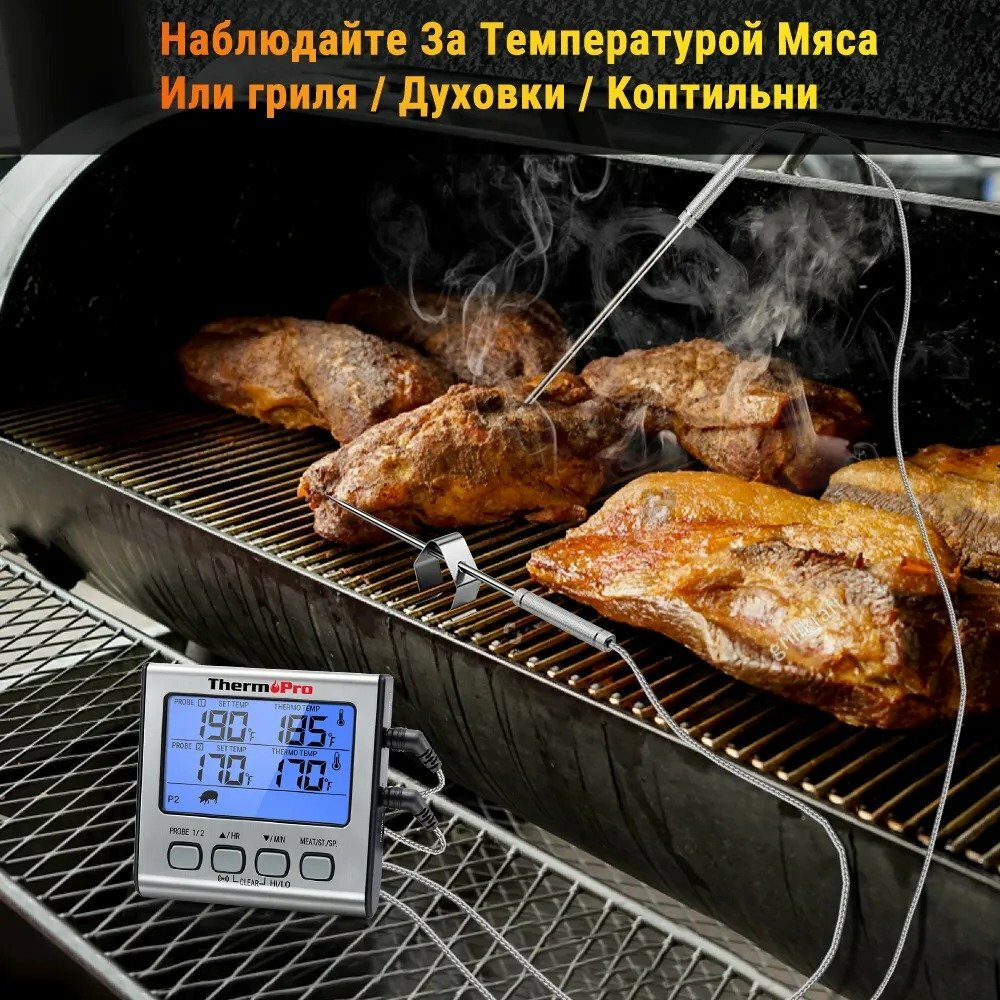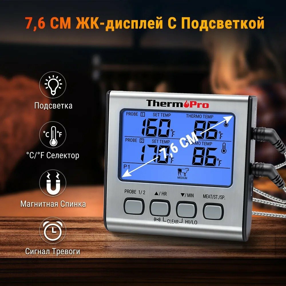 Двухканальный термометр для мяса Thermopro TP-17 с выносным щупом, таймером и магнитом