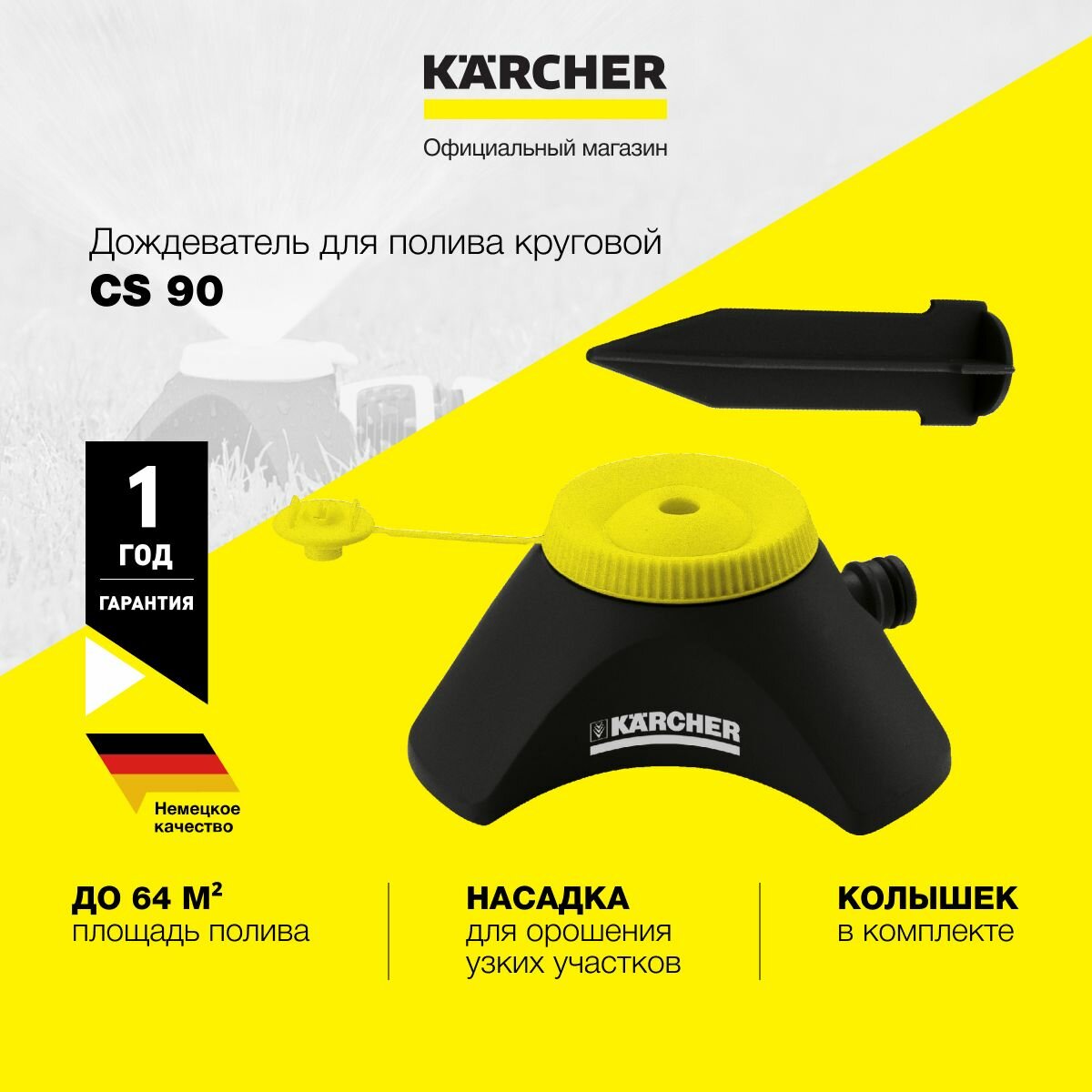 Дождеватель круговой KARCHER CS 90, 9 м диаметр полива, 64 м2 площадь полива