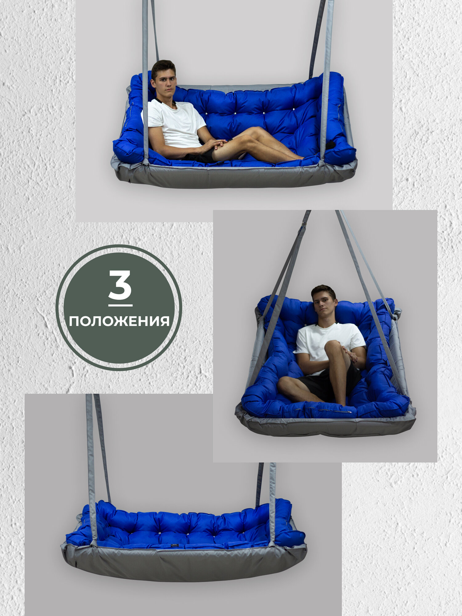 Подвесные качели, качели садовые, диван 150*100, качели для дачи, уличные качели, качель тёмно-серая с синей подушкой