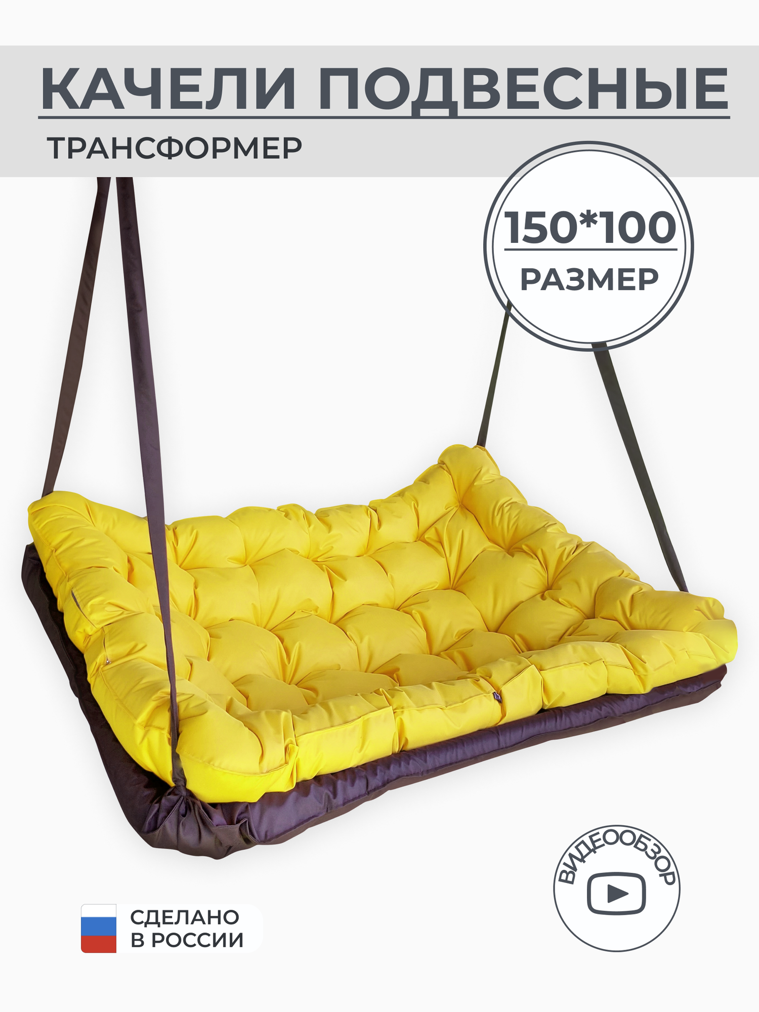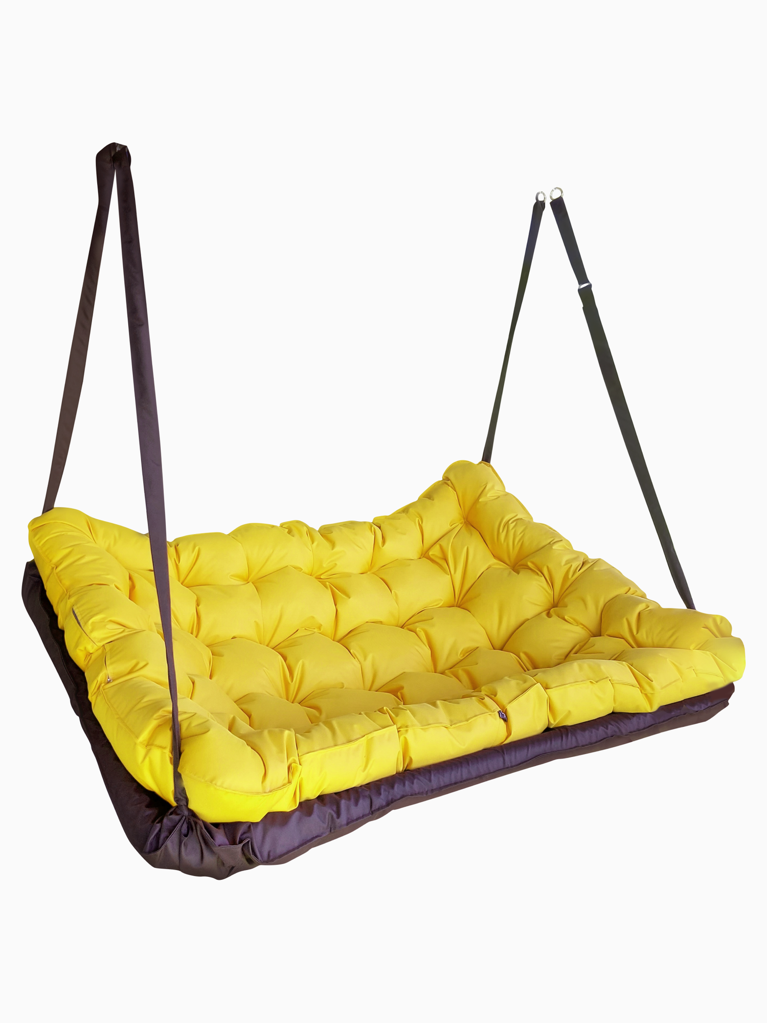 Купить Подвесные качели, качели садовые, диван 150*100, качели для дачи, уличные качели, качель тёмно-коричневая с желтой подушкой