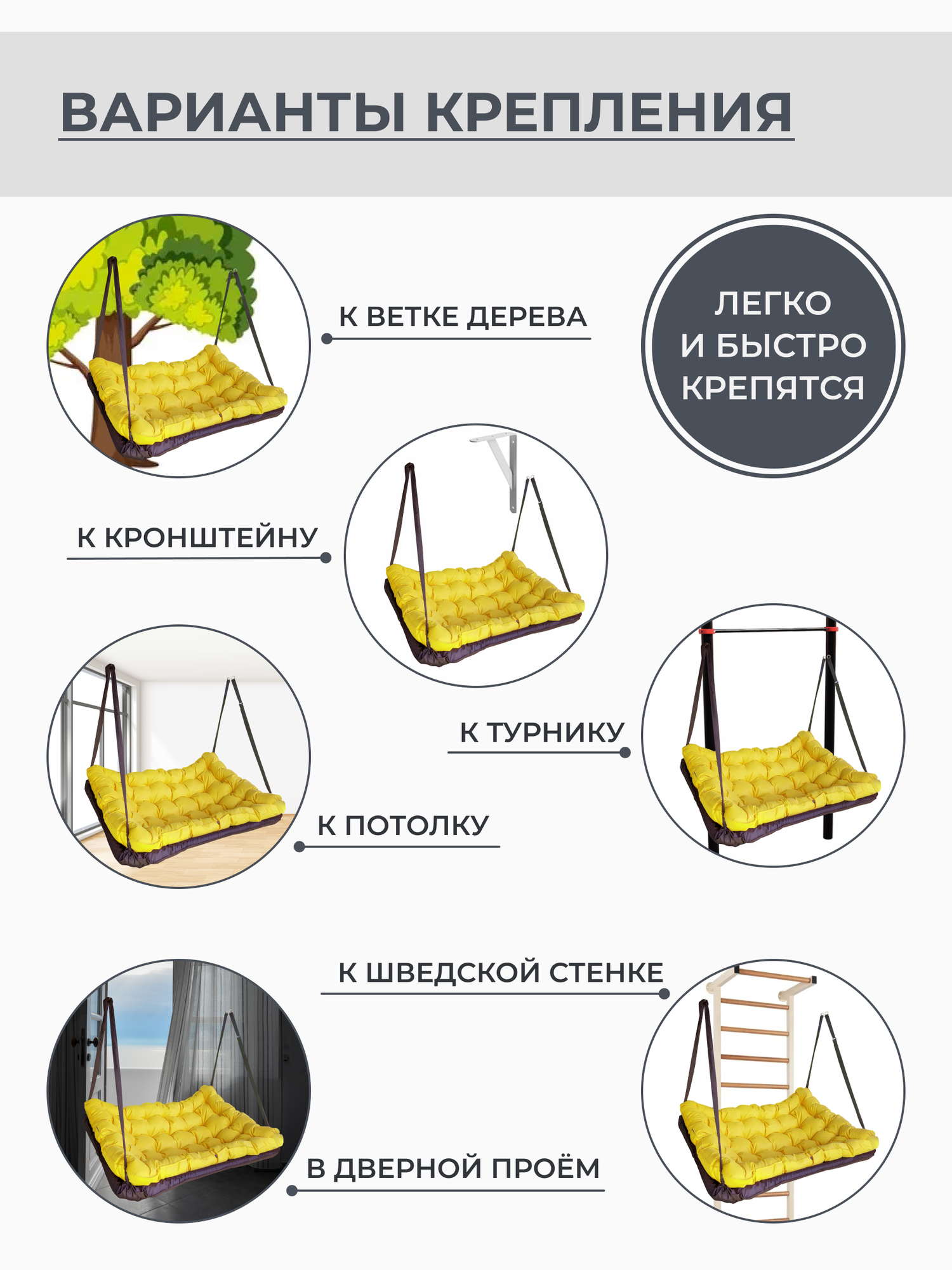 СохранитьПодвесные качели, качели садовые, диван 150*100, качели для дачи, уличные качели, качель тёмно-коричневая с желтой подушкой интересное: