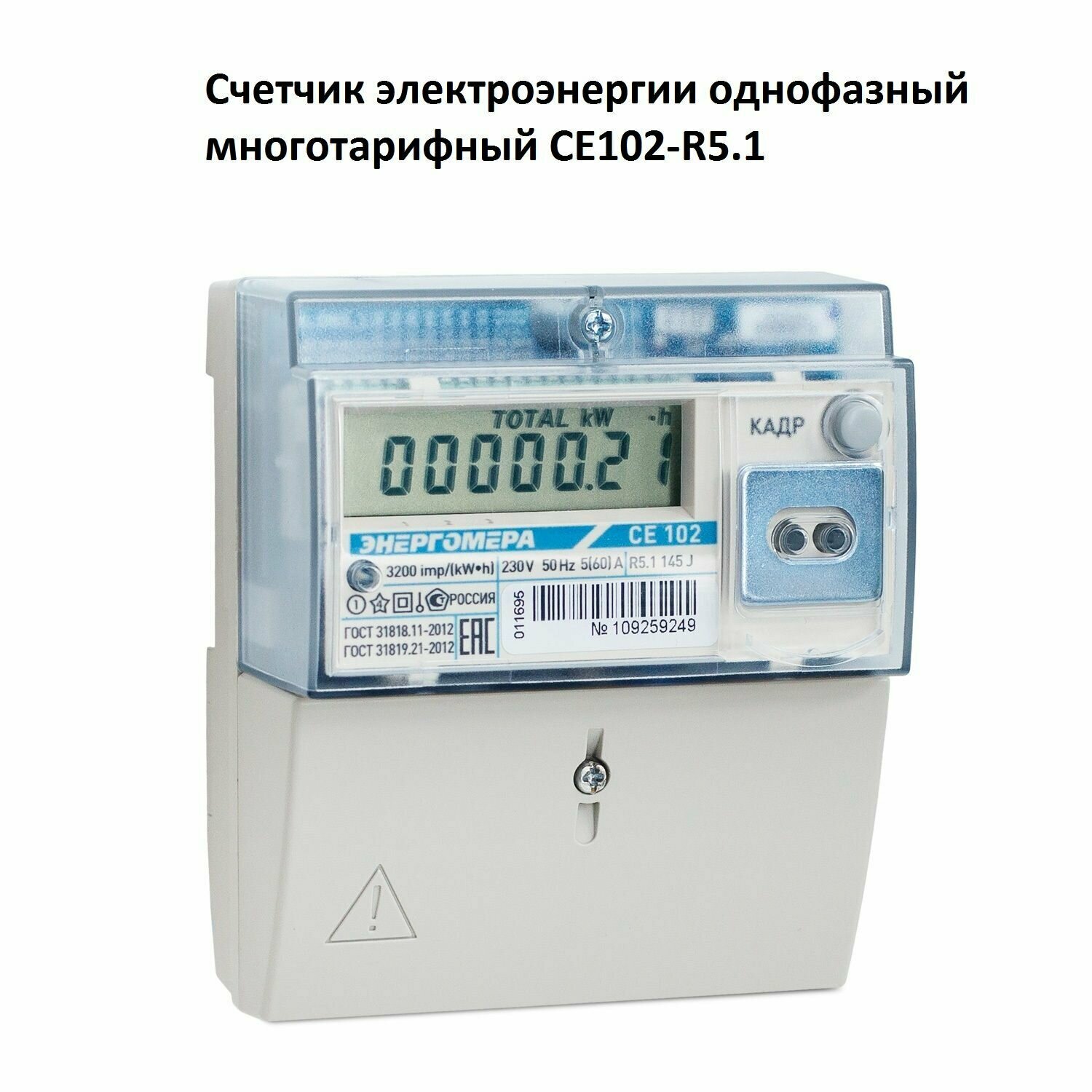 СохранитьСчетчик электроэнергии однофазный многотарифный Энергомера CE 102 R5.1 145 J 5(60) А без привязки к региону интересное: