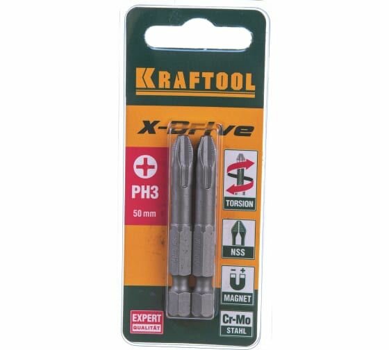 Купить Торсионные биты KRAFTOOL X-Drive PH3, 50 мм, 2 шт, 26121-3-50-2