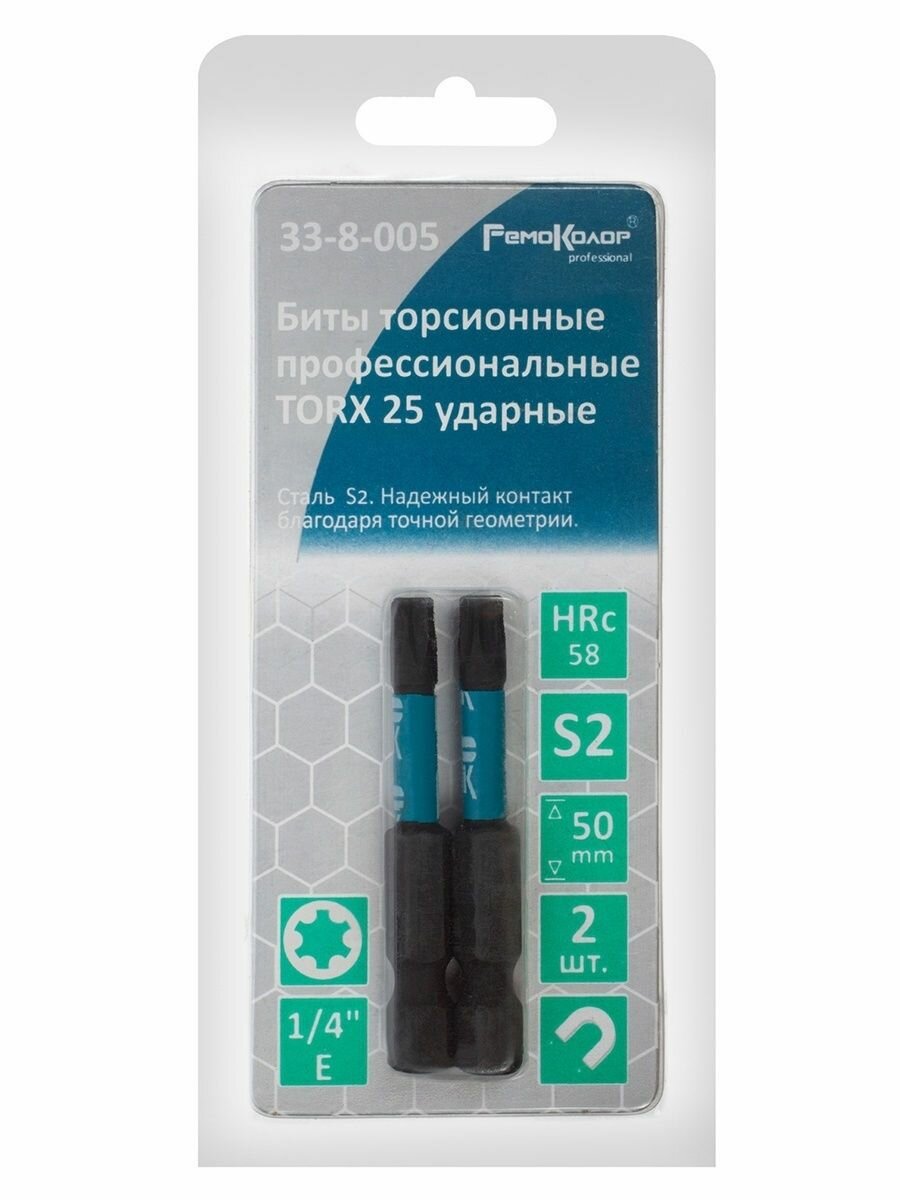 Биты профессиональные торсионные (2 шт; T25x50 мм; сталь S2; 1/4" Е) РемоКолор 33-8-005 .