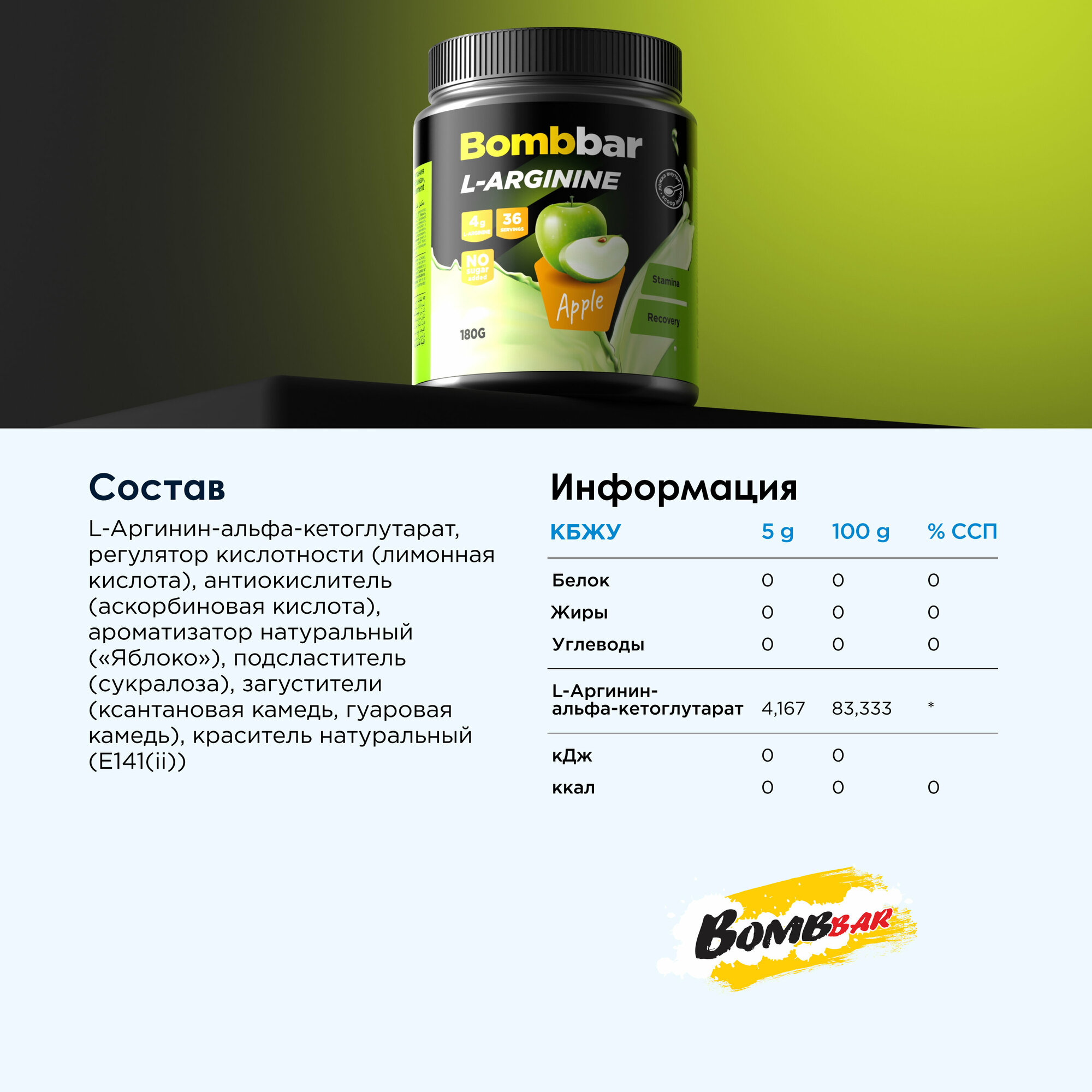 Купить BOMBBAR L-Arginine 2:1:1 180 г (Яблоко)