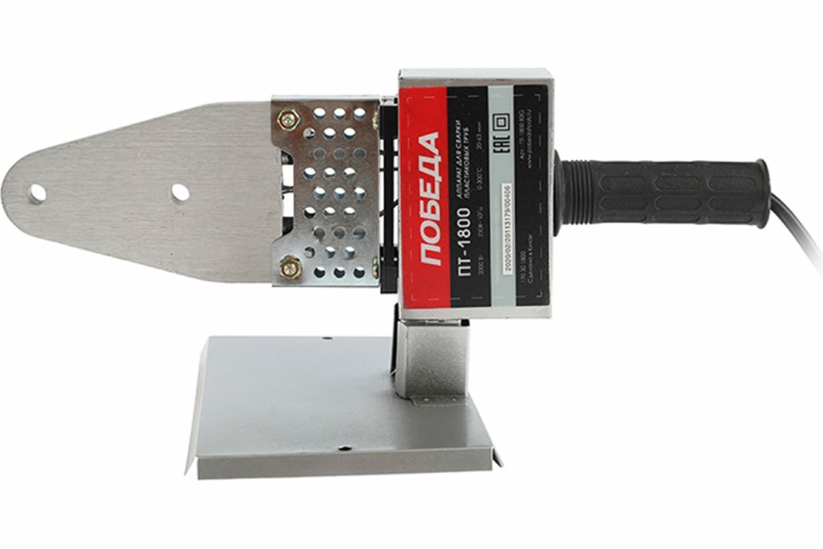 Аппарат для сварки пластиковых труб победа, ПТ-1800, 2000 Вт., 6 насадок, стойка, отвертка, кейс металл.