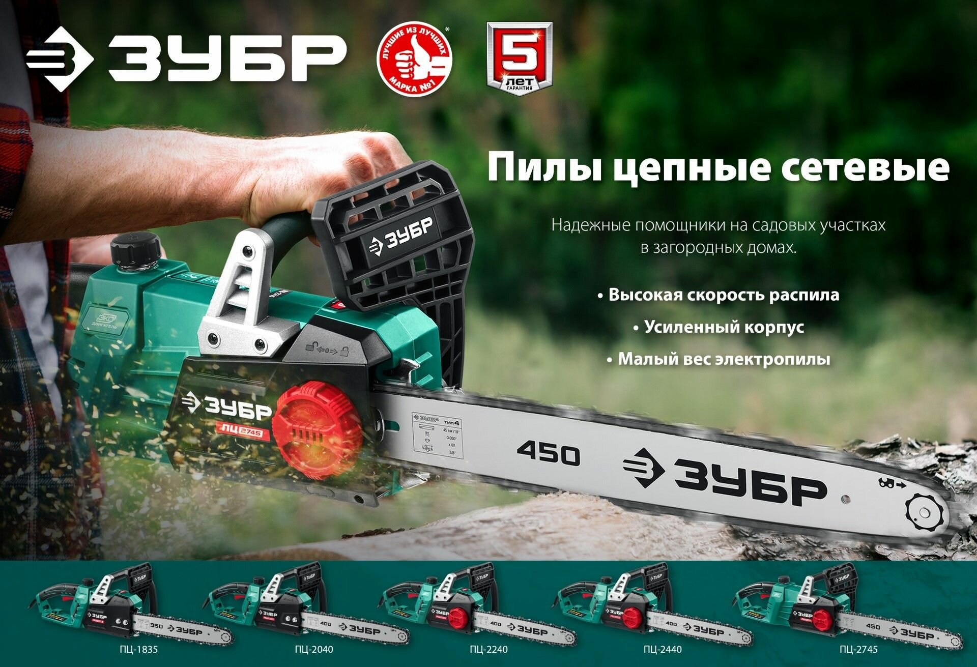 Электрическая цепная пила ЗУБР ПЦ-2040, серия «мастер»