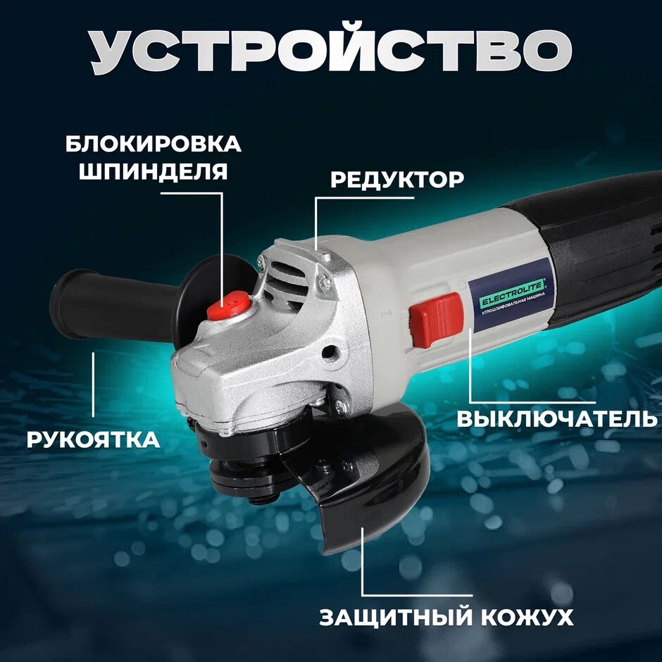 Болгарка / Ушм 125 / Болгарка 125 / Electrolite УШМ-1100 3 диска В комплекте ( 1100 Вт, 125 мм, бронированная обмотка, тонкая рукоять )