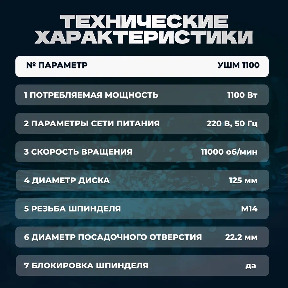 Болгарка для резки / Углошлифовальная машинка по металлу Electrolite УШМ-1100 3 диска В комплекте ( 1100 Вт, 125 мм, бронированная обмотка, тонкая рукоять ) интересное: