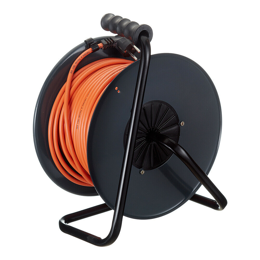 Купить Удлинитель силовой на катушке Партнер Электро ProfiLine PL03 (UP216C-450GR) открытая установка с заземлением 50 м 16 А 220 В 3,5 кВт 4 розетки ПВС 3х1,5 мм2 IP44 с брызгозащитой серый/оранжевый