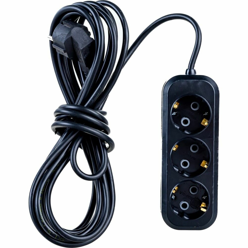 Удлинитель бытовой 3 гнезда с заземлением и выключателем 5м ПВС 3х0,75 черный Атлант
