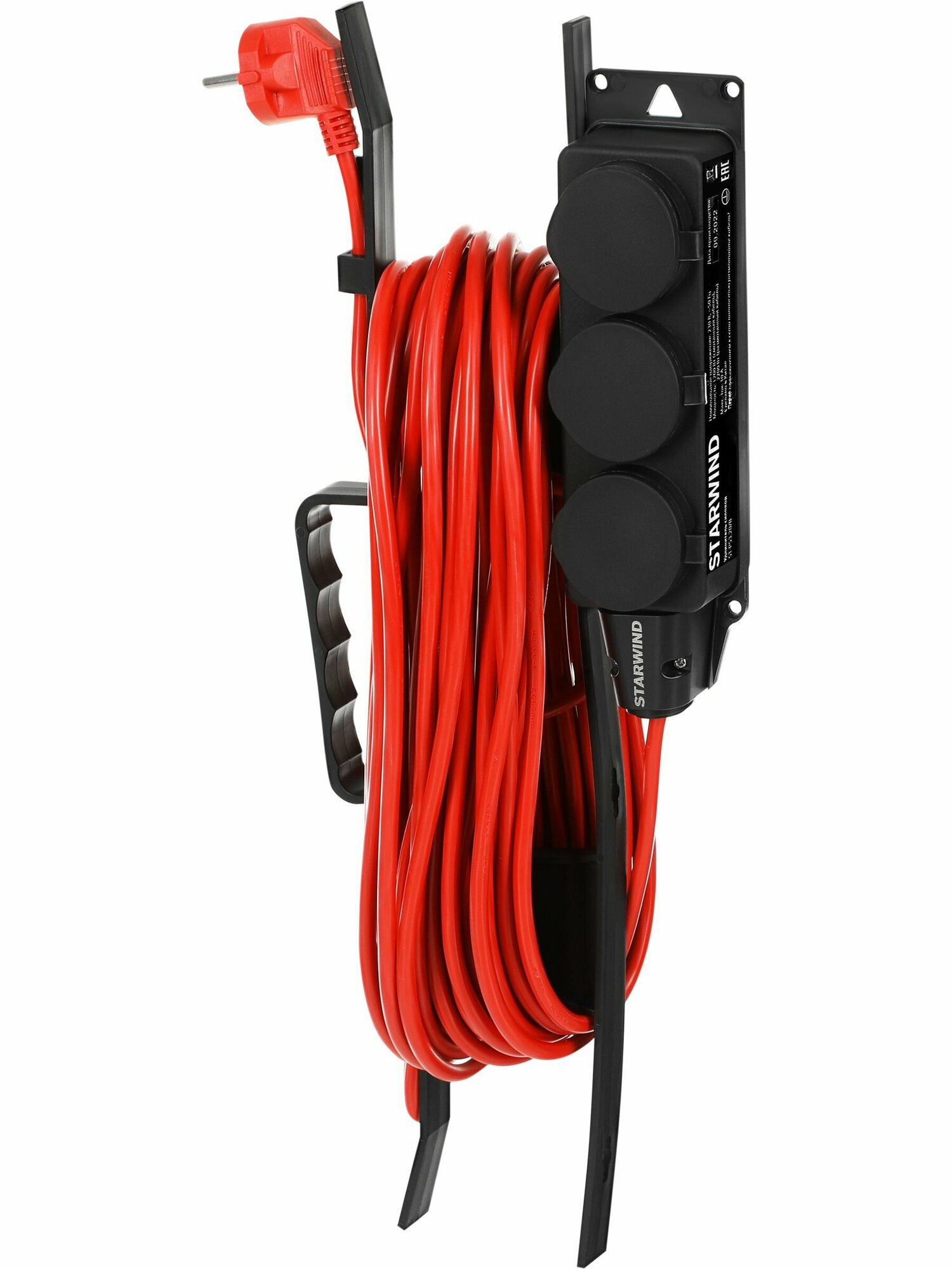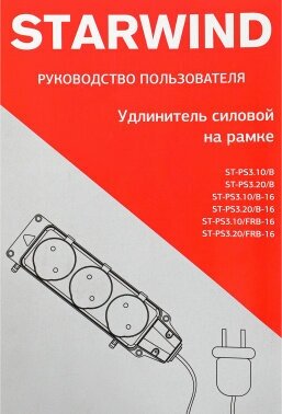 Удлинитель силовой STARWIND ST-PS3.20/B, розеток 3шт, 3x2.0 кв.мм, 20м, ПВС, рамка пластиковая, черный (SГ…-PS3.20/B)