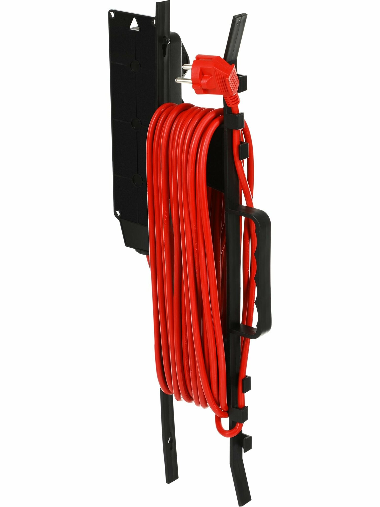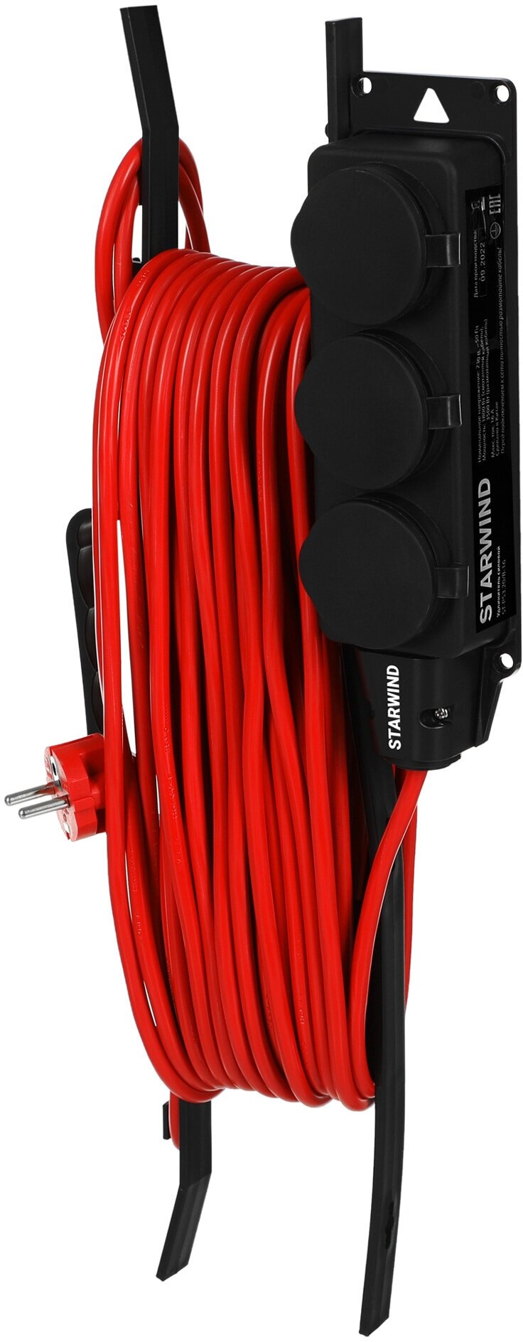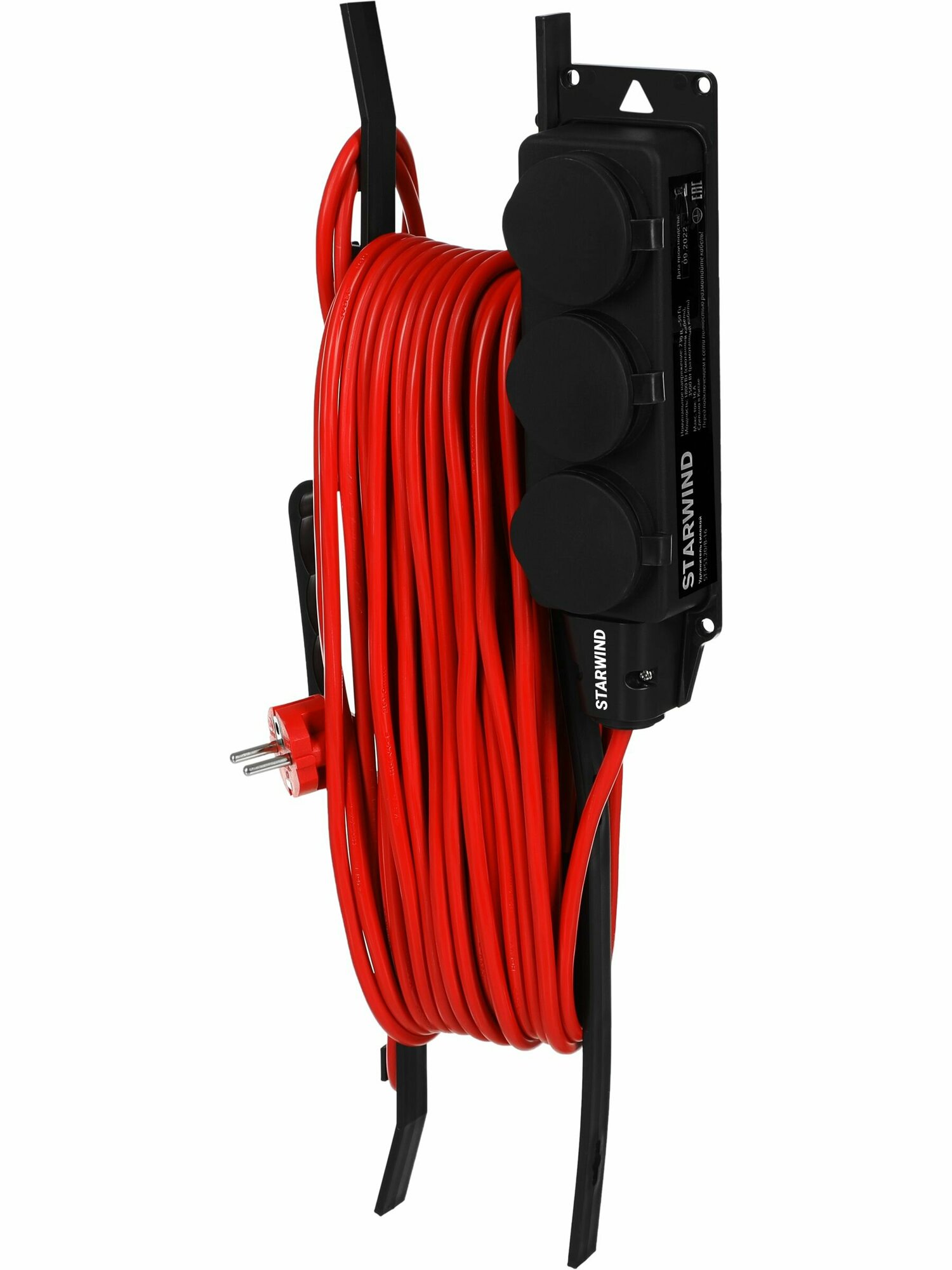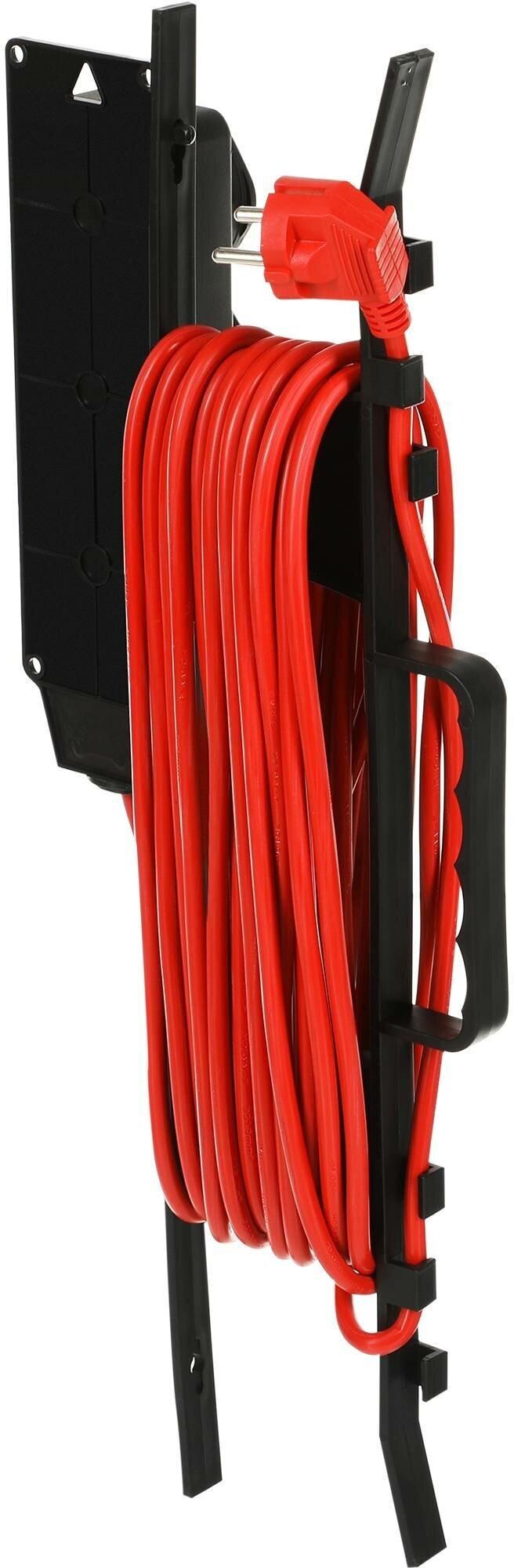 | Плюсы: | Плотные розетки с заземлением. 20 метров намотанных уже на рамку. |