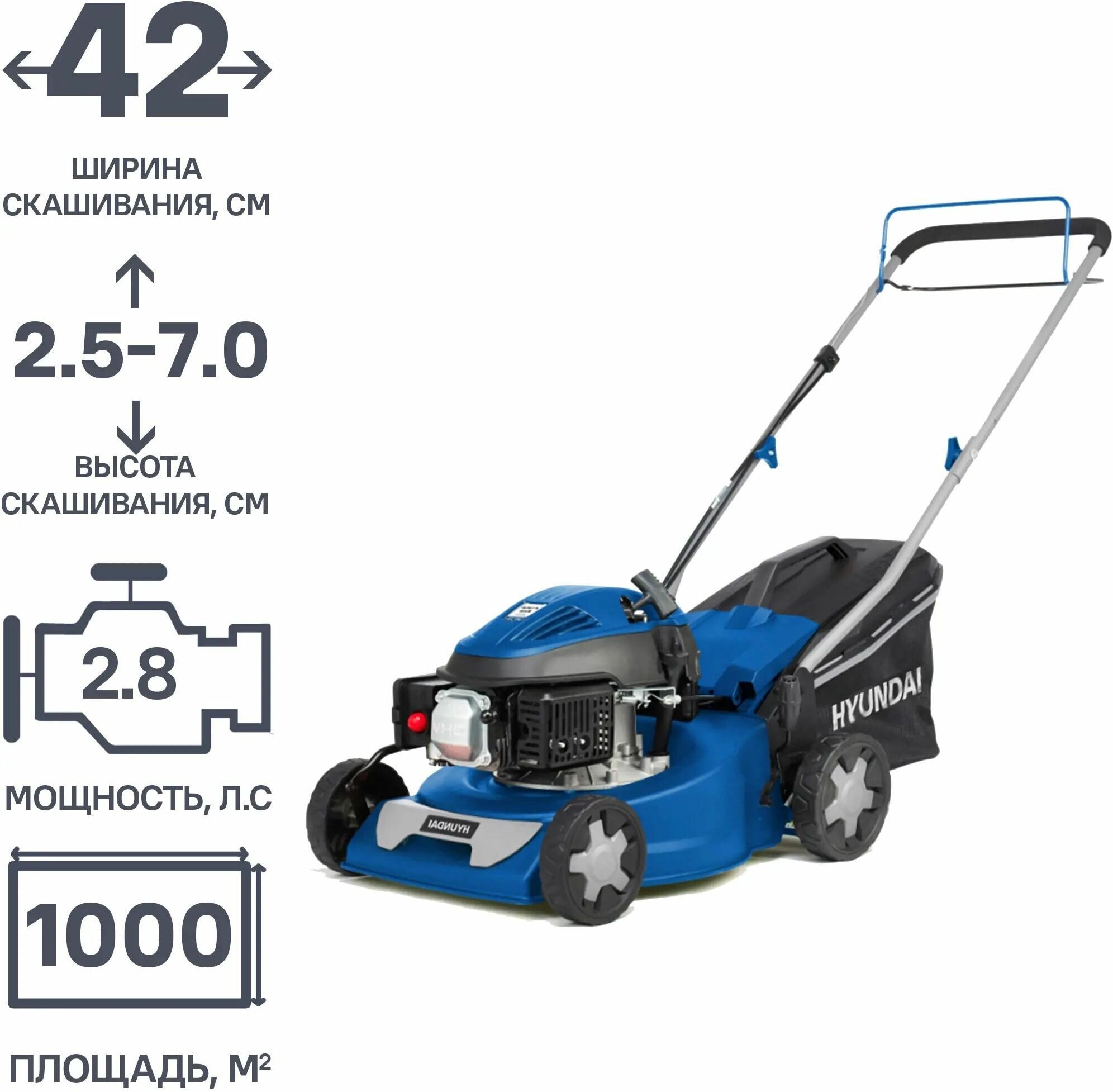 HYUNDAI [L 4220S] Бензиновая газонокосилка {самоходная, двигатель Hyundai ICV100,4-х такт, 2.8 л.с./99.8 см3, Ширина