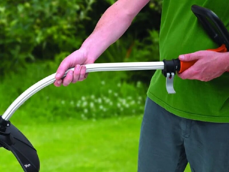 | Плюсы: | Очень лёгкая, можно работать одной рукой, автоподача лески, одна кнопка включения, регулировка длины штанги, возможность перевернуть штангу на 180 градусов для обработки краёв дорожек со специальным роликом, довольно низко скашивает траву, дополнительная головка с усиленной леской, удобная намотка лески на катушку, головка снимается нажатием лепестков, а не откручивается и обратно устанавливается путём защёлкивания, вилка подключения удлинителя жёстко закреплена на корпусе, а не болтается на коротеньком проводе. |