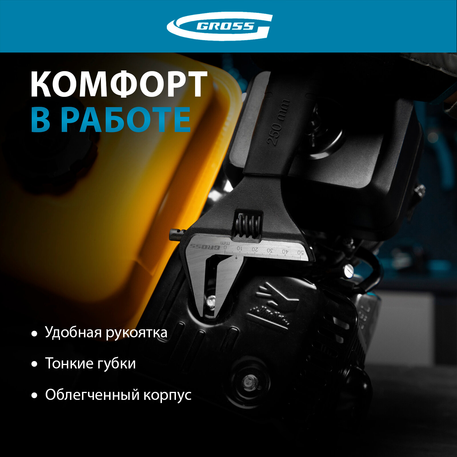 Ключ разводной, 250 мм 15569 , CrV, тонкие губки, защитные насадки Gross