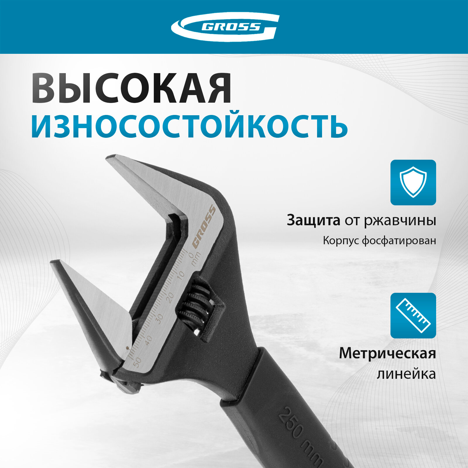 Купить Ключ разводной, 250 мм, CrV, тонкие губки, защитные насадки Gross