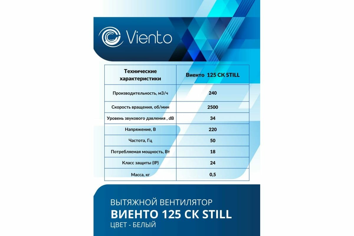 Вентилятор вытяжной Viento, 240 м³/ч, обратный клапан, виенто 125СК STILL-B