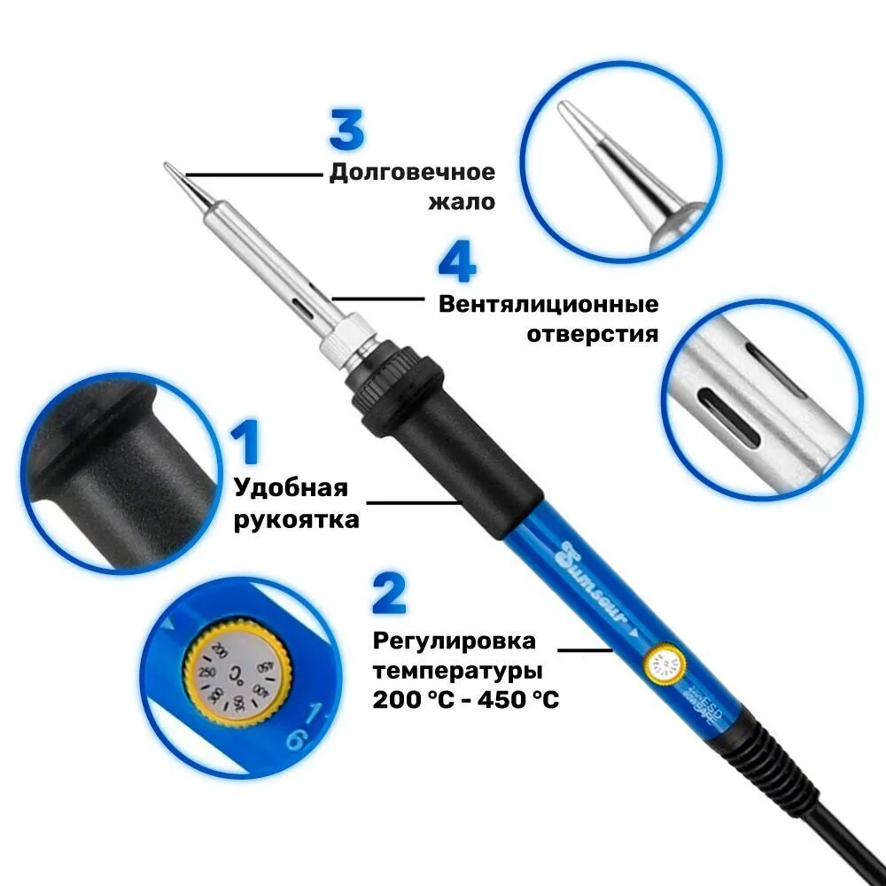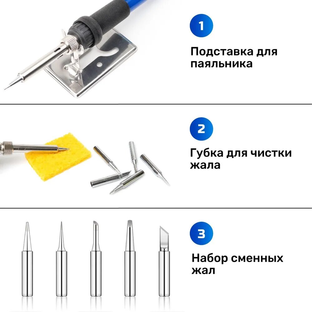 Паяльник электрический Sumsour 60 Вт, паяльный набор, 10 предметов