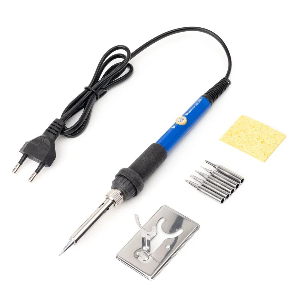 | Комплектация | Паяльник 80 Вт — 1 шт. Комплект дополнительных сменных жал типа 900М — 5 шт. Подставка для пайки — 1 шт. Губка для чистки паяльника — 1 шт. Припой для пайки — 1 шт. |