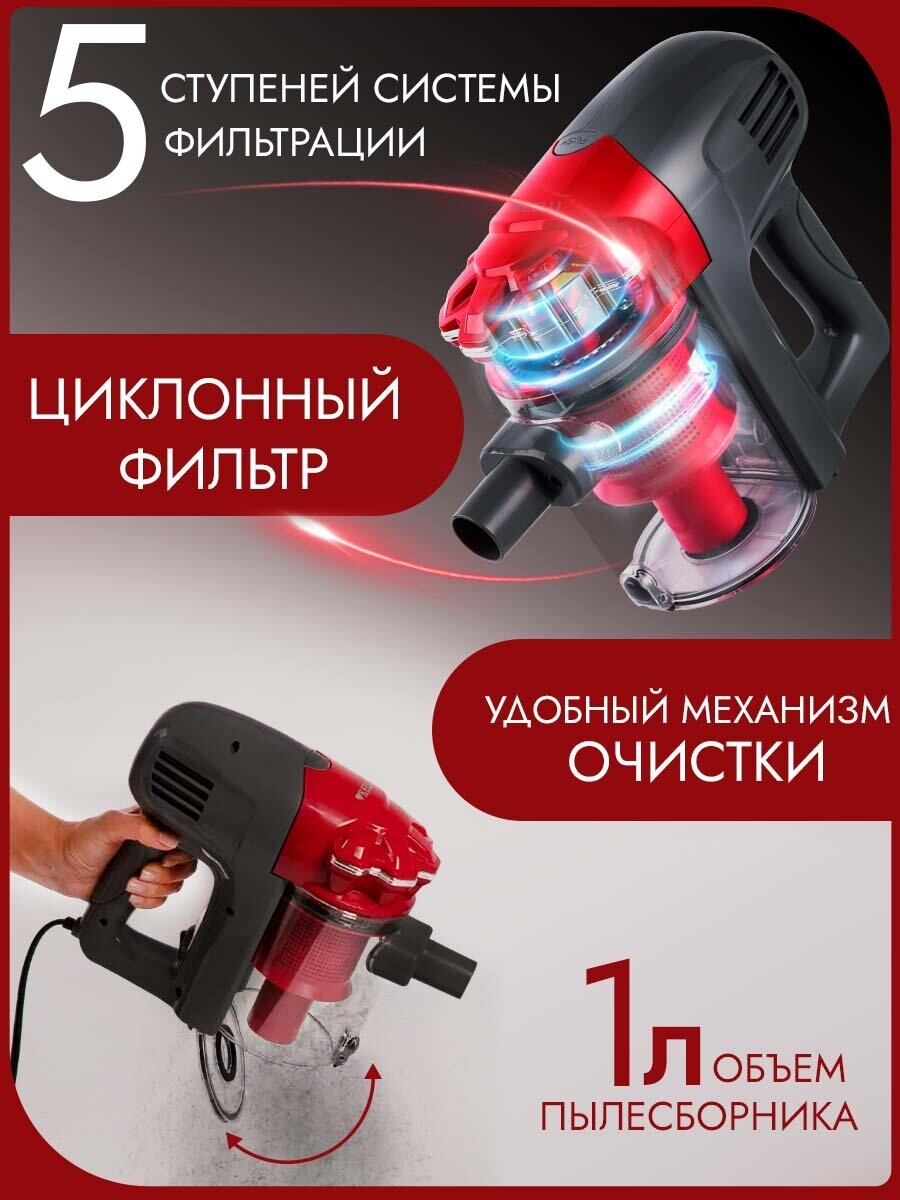 Пылесос Kelli KL-8021 вертикальный объем контейнера 1 литр (красный)