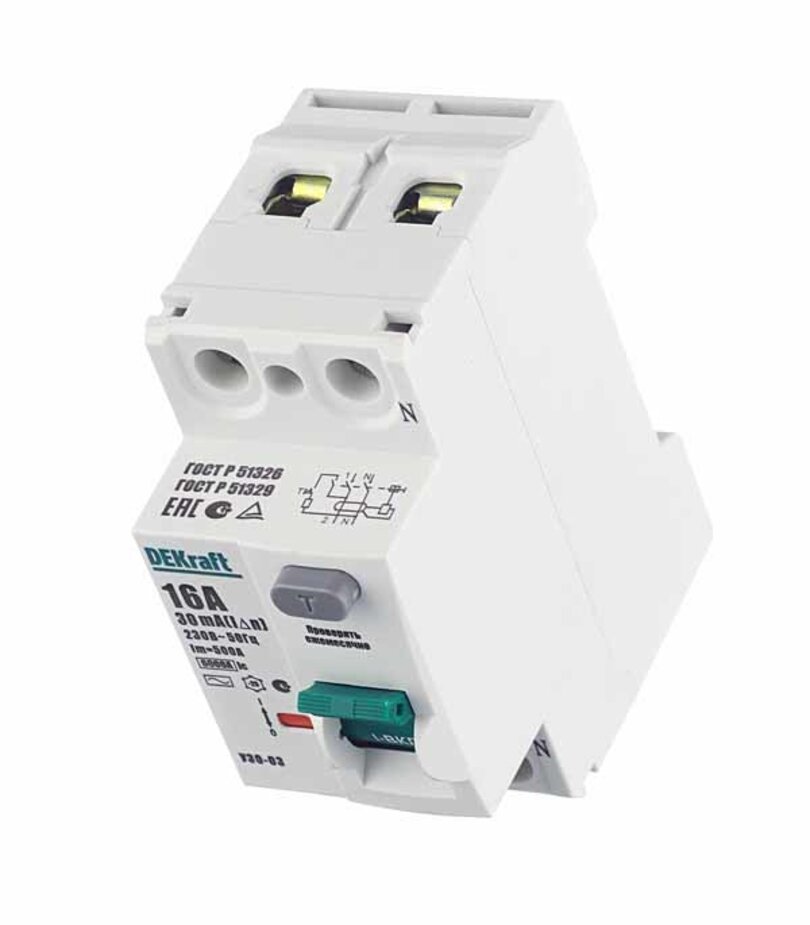 Дифференциальный выключатель DEKRAFT УЗО-03 2P AC16 A 30 мА 6 кА