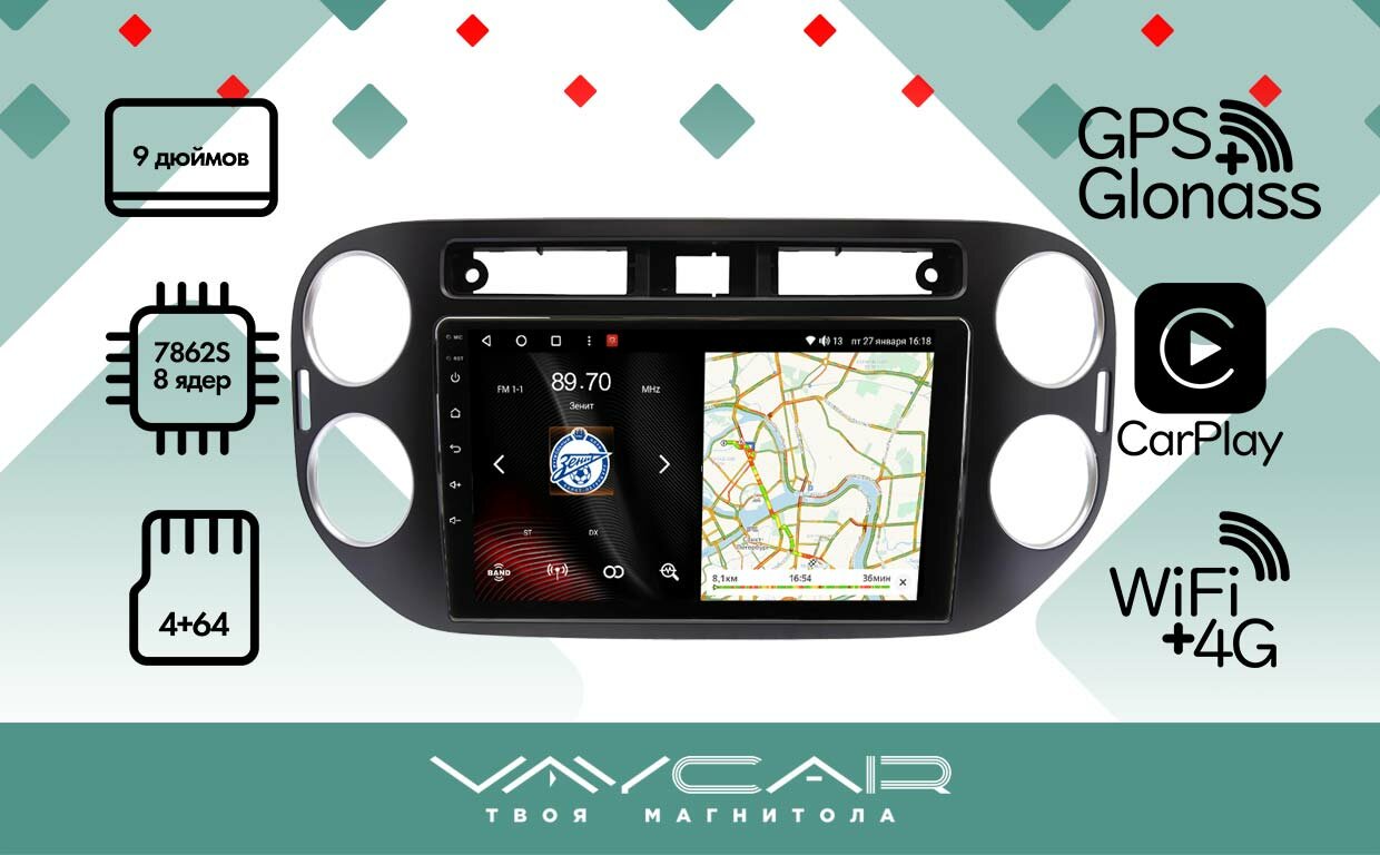 Магнитола Vaycar 09VO4 для VOLKSWAGEN Tiguan 2007-2016 (Андроид, 4+64, 8 ядер, WiFi, BT, 4G, GPS, QLED 9")