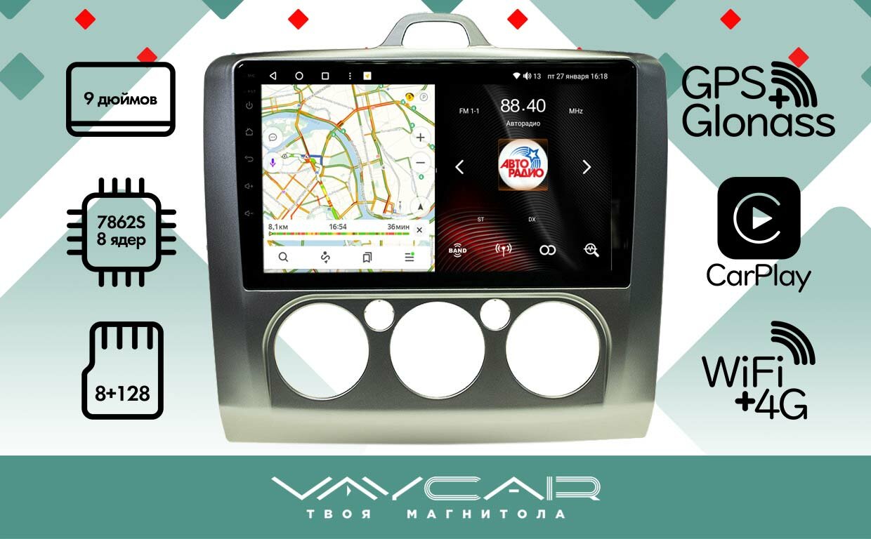 Магнитола Vaycar 09VO8 для FORD Focus II 2005-2011 (Кондиционер) (Андроид, 8+128, 8 ядер, WiFi, BT, 4G, GPS, QLED 9")
