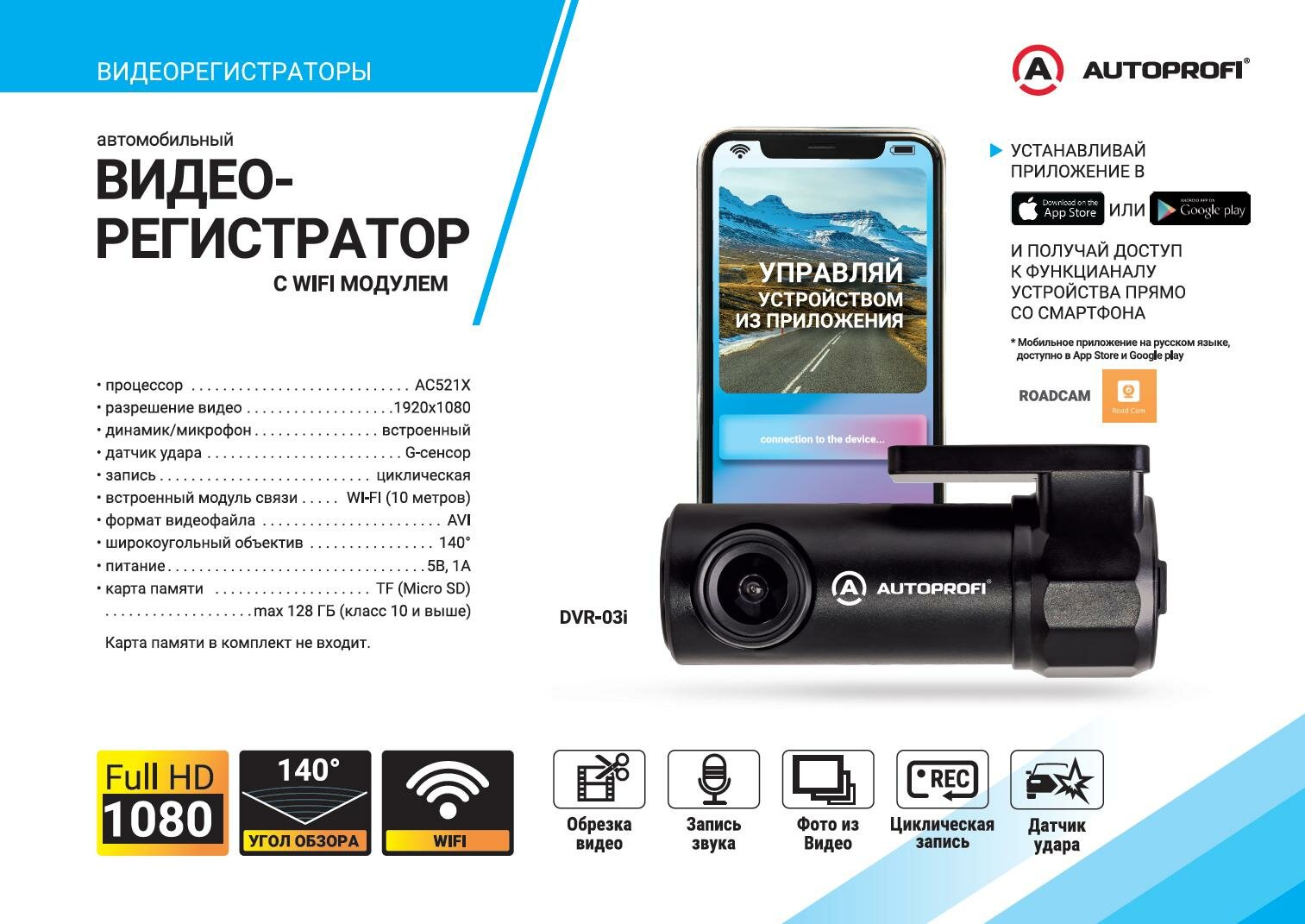 Видеорегистратор "Autoprofi" (Угол Обзора 140°, Датчик Удара, Доступ Через Приложение По Wifi) AUTOPROFI арт. DVR-03i